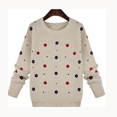 Sale Autumn Fashion Women Knit Sweater Pullovers Long Sleeve Floral Print Sweater Solid Embroidery Warm Casual Jumpers