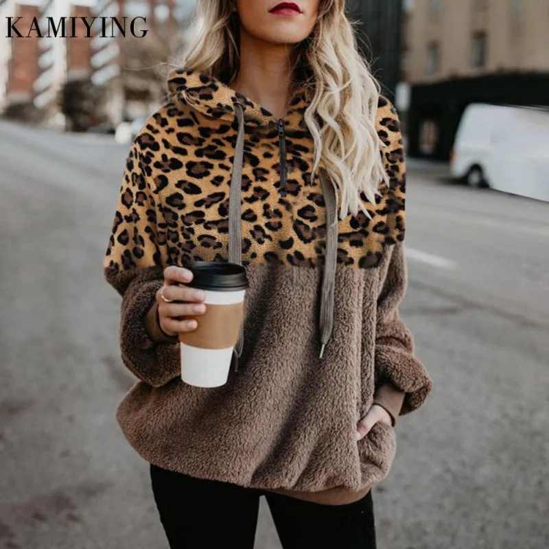 Best Offer Leopard Teddy Fleece Sweater Hooded Oversized Pullover Female Fall Winter Warm Streetwear Sweaters Plus Size 5XL 2020 new