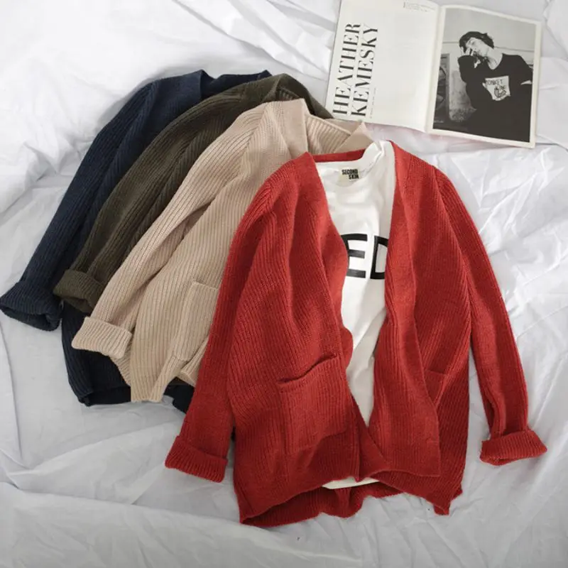 Sale MM Women Open Stitch Casual Sweater Autumn Solid Cardigan Long Sleeve Knitted Sweater Loose Cardigan