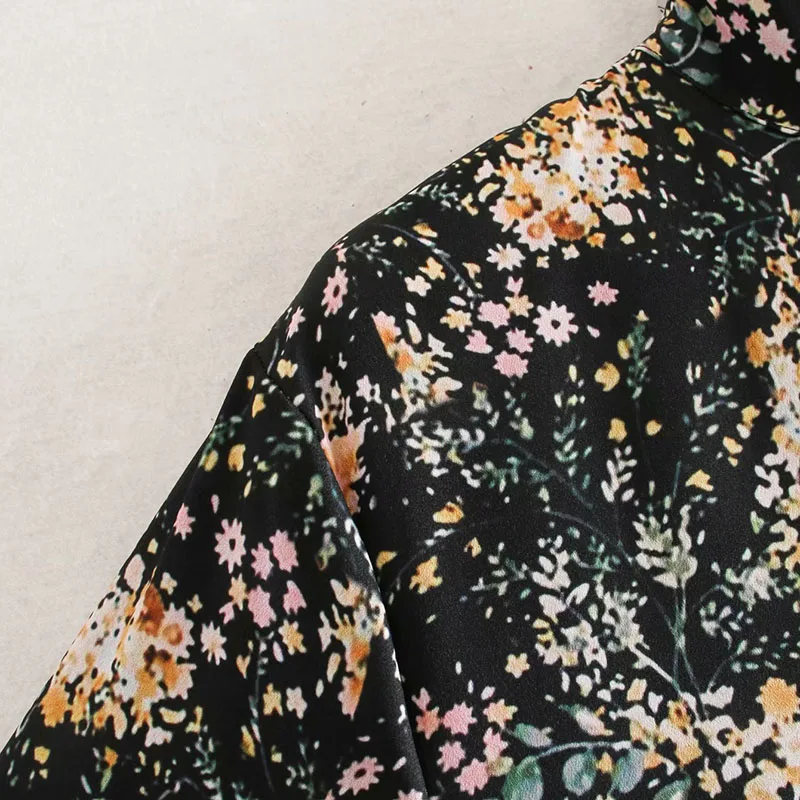 New za 2019 long sleeve dress floral print dress women a-line casual summer dress midi chic vestido mujer